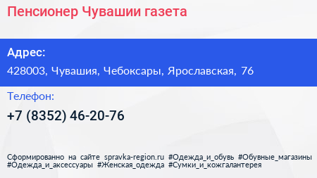 Пенсионер Чувашии, газета по адресу 428003, Чувашия, Чебоксары, Ярославская, 76 в дальнейшем Организация, размещена в следующих категориях: