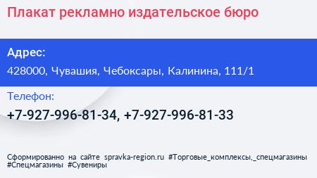 Плакат, рекламно-издательское бюро по адресу 428000, Чувашия, Чебоксары, Калинина, 111/1 в дальнейшем Организация, размещена в следующих категориях: