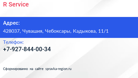R-Service по адресу 428037, Чувашия, Чебоксары, Кадыкова, 11/1 в дальнейшем Организация, размещена в следующих категориях: