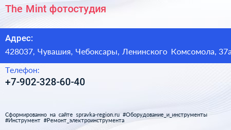 The Mint, фотостудия по адресу 428037, Чувашия, Чебоксары, Ленинского Комсомола, 37а в дальнейшем Организация, размещена в следующих категориях: