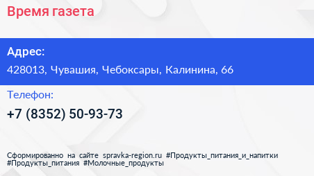 Время, газета по адресу 428013, Чувашия, Чебоксары, Калинина, 66 в дальнейшем Организация, размещена в следующих категориях: