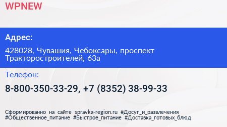 WPNEW по адресу 428028, Чувашия, Чебоксары, проспект Тракторостроителей, 63а в дальнейшем Организация, размещена в следующих категориях: