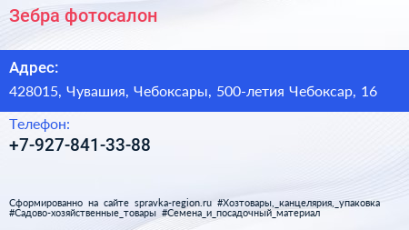 Зебра, фотосалон по адресу 428015, Чувашия, Чебоксары, 500-летия Чебоксар, 16 в дальнейшем Организация, размещена в следующих категориях: