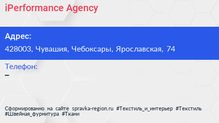 iPerformance Agency по адресу 428003, Чувашия, Чебоксары, Ярославская, 74 в дальнейшем Организация, размещена в следующих категориях:
