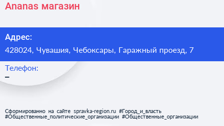 Ananas, магазин по адресу 428024, Чувашия, Чебоксары, Гаражный проезд, 7 в дальнейшем Организация, размещена в следующих категориях: