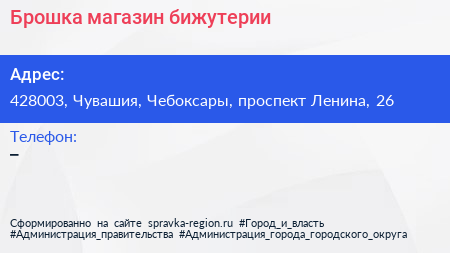 Брошка, магазин бижутерии по адресу 428003, Чувашия, Чебоксары, проспект Ленина, 26 в дальнейшем Организация, размещена в следующих категориях: