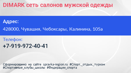 DIMARK, сеть салонов мужской одежды по адресу 428000, Чувашия, Чебоксары, Калинина, 105а в дальнейшем Организация, размещена в следующих категориях: