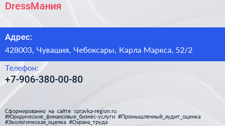 DressМания по адресу 428003, Чувашия, Чебоксары, Карла Маркса, 52/2 в дальнейшем Организация, размещена в следующих категориях: