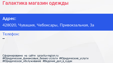 Галактика, магазин одежды по адресу 428020, Чувашия, Чебоксары, Привокзальная, 3а в дальнейшем Организация, размещена в следующих категориях: