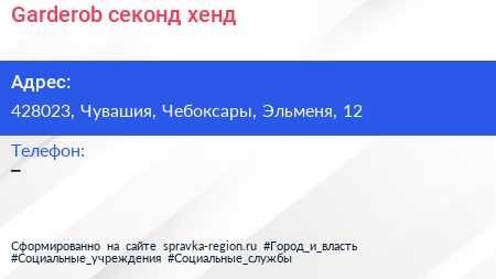 Garderob, секонд-хенд по адресу 428023, Чувашия, Чебоксары, Эльменя, 12 в дальнейшем Организация, размещена в следующих категориях: