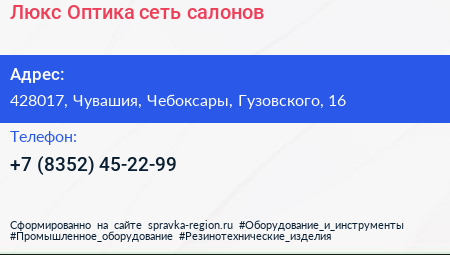 Люкс Оптика, сеть салонов по адресу 428017, Чувашия, Чебоксары, Гузовского, 16 в дальнейшем Организация, размещена в следующих категориях: