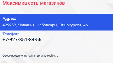 Максимка, сеть магазинов по адресу 429959, Чувашия, Чебоксары, Винокурова, 46 в дальнейшем Организация, размещена в следующих категориях: