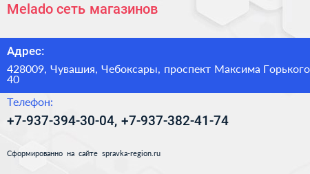Melado, сеть магазинов по адресу 428009, Чувашия, Чебоксары, проспект Максима Горького, 40 в дальнейшем Организация, размещена в следующих категориях: