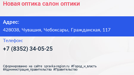 Новая оптика, салон оптики по адресу 428038, Чувашия, Чебоксары, Гражданская, 117 в дальнейшем Организация, размещена в следующих категориях: