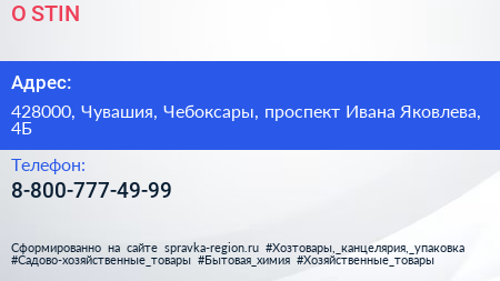 O`STIN по адресу 428000, Чувашия, Чебоксары, проспект Ивана Яковлева, 4Б в дальнейшем Организация, размещена в следующих категориях: