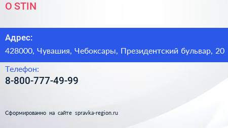 O`STIN по адресу 428000, Чувашия, Чебоксары, Президентский бульвар, 20 в дальнейшем Организация, размещена в следующих категориях: