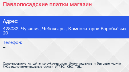 Павлопосадские платки, магазин по адресу 428032, Чувашия, Чебоксары, Композиторов Воробьёвых, 20 в дальнейшем Организация, размещена в следующих категориях: