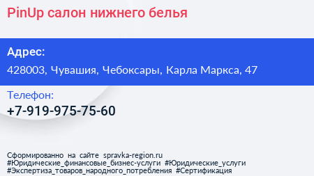 PinUp, салон нижнего белья по адресу 428003, Чувашия, Чебоксары, Карла Маркса, 47 в дальнейшем Организация, размещена в следующих категориях: