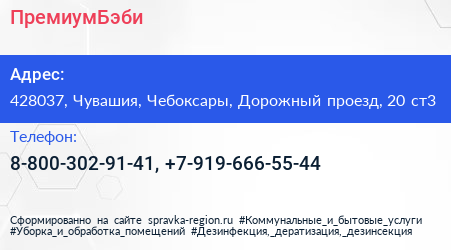ПремиумБэби по адресу 428037, Чувашия, Чебоксары, Дорожный проезд, 20 ст3 в дальнейшем Организация, размещена в следующих категориях: