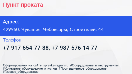 Пункт проката по адресу 429960, Чувашия, Чебоксары, Строителей, 44 в дальнейшем Организация, размещена в следующих категориях: