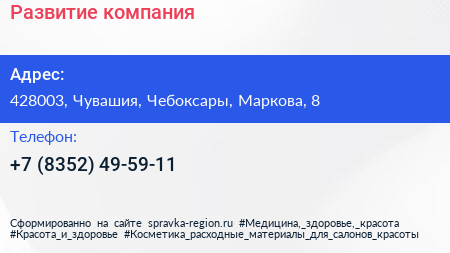 Развитие, компания по адресу 428003, Чувашия, Чебоксары, Маркова, 8 в дальнейшем Организация, размещена в следующих категориях: