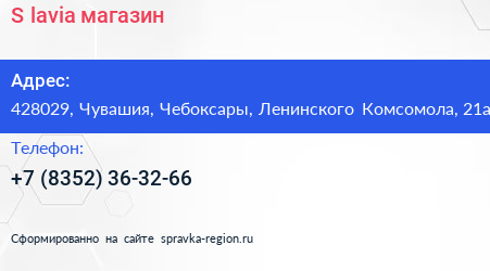 S.lavia, магазин по адресу 428029, Чувашия, Чебоксары, Ленинского Комсомола, 21а в дальнейшем Организация, размещена в следующих категориях: