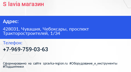 S.lavia, магазин по адресу 428031, Чувашия, Чебоксары, проспект Тракторостроителей, 1/34 в дальнейшем Организация, размещена в следующих категориях: