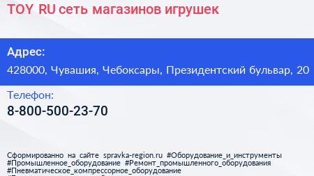 TOY.RU, сеть магазинов игрушек по адресу 428000, Чувашия, Чебоксары, Президентский бульвар, 20 в дальнейшем Организация, размещена в следующих категориях: