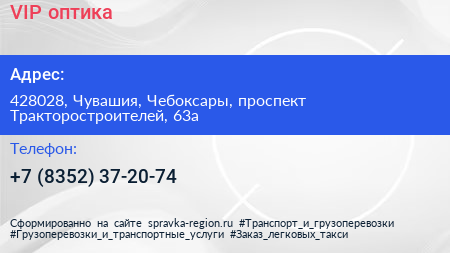 VIP-оптика по адресу 428028, Чувашия, Чебоксары, проспект Тракторостроителей, 63а в дальнейшем Организация, размещена в следующих категориях: