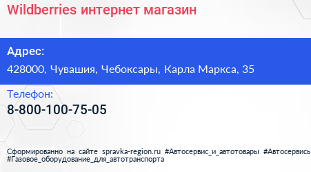 Wildberries, интернет-магазин по адресу 428000, Чувашия, Чебоксары, Карла Маркса, 35 в дальнейшем Организация, размещена в следующих категориях: