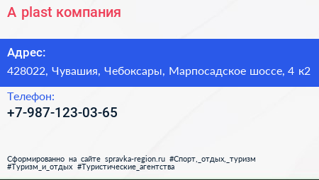 A-plast, компания по адресу 428022, Чувашия, Чебоксары, Марпосадское шоссе, 4 к2 в дальнейшем Организация, размещена в следующих категориях: