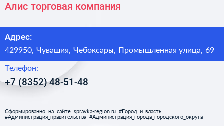 Алис, торговая компания по адресу 429950, Чувашия, Чебоксары, Промышленная улица, 69 в дальнейшем Организация, размещена в следующих категориях: