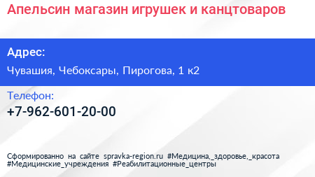 Апельсин, магазин игрушек и канцтоваров по адресу Чувашия, Чебоксары, Пирогова, 1 к2 в дальнейшем Организация, размещена в следующих категориях: