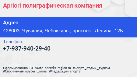 Apriori, полиграфическая компания по адресу 428003, Чувашия, Чебоксары, проспект Ленина, 12Б в дальнейшем Организация, размещена в следующих категориях: