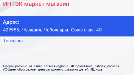 ИНТЭК-маркет, магазин по адресу 429955, Чувашия, Чебоксары, Советская, 40 в дальнейшем Организация, размещена в следующих категориях: