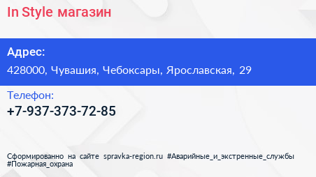 In Style, магазин по адресу 428000, Чувашия, Чебоксары, Ярославская, 29 в дальнейшем Организация, размещена в следующих категориях: