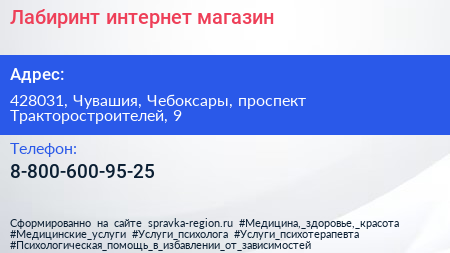 Лабиринт, интернет-магазин по адресу 428031, Чувашия, Чебоксары, проспект Тракторостроителей, 9 в дальнейшем Организация, размещена в следующих категориях: