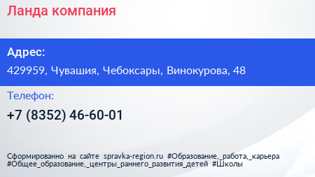 Ланда, компания по адресу 429959, Чувашия, Чебоксары, Винокурова, 48 в дальнейшем Организация, размещена в следующих категориях:
