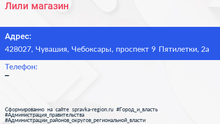 Лили, магазин по адресу 428027, Чувашия, Чебоксары, проспект 9 Пятилетки, 2а в дальнейшем Организация, размещена в следующих категориях: