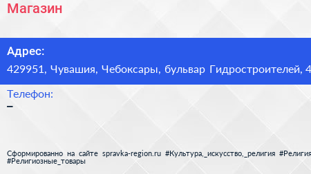 Магазин по адресу 429951, Чувашия, Чебоксары, бульвар Гидростроителей, 4 в дальнейшем Организация, размещена в следующих категориях:
