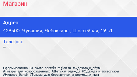 Магазин по адресу 429500, Чувашия, Чебоксары, Шоссейная, 19 к1 в дальнейшем Организация, размещена в следующих категориях: