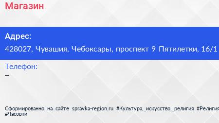 Магазин по адресу 428027, Чувашия, Чебоксары, проспект 9 Пятилетки, 16/1 в дальнейшем Организация, размещена в следующих категориях: