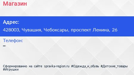Магазин по адресу 428003, Чувашия, Чебоксары, проспект Ленина, 26 в дальнейшем Организация, размещена в следующих категориях: