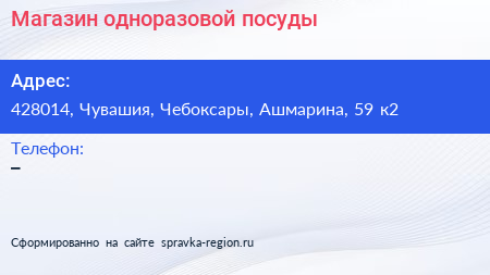 Магазин одноразовой посуды по адресу 428014, Чувашия, Чебоксары, Ашмарина, 59 к2 в дальнейшем Организация, размещена в следующих категориях: