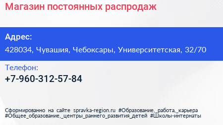 Магазин постоянных распродаж по адресу 428034, Чувашия, Чебоксары, Университетская, 32/70 в дальнейшем Организация, размещена в следующих категориях:
