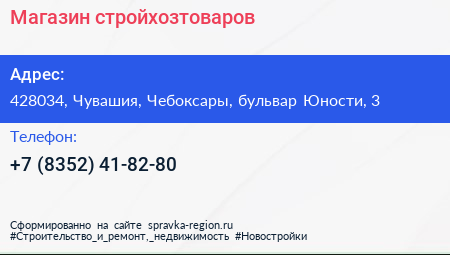 Магазин стройхозтоваров по адресу 428034, Чувашия, Чебоксары, бульвар Юности, 3 в дальнейшем Организация, размещена в следующих категориях: