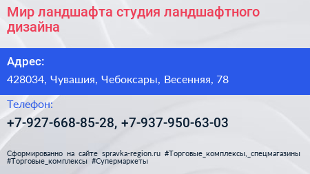 Мир ландшафта, студия ландшафтного дизайна по адресу 428034, Чувашия, Чебоксары, Весенняя, 78 в дальнейшем Организация, размещена в следующих категориях: