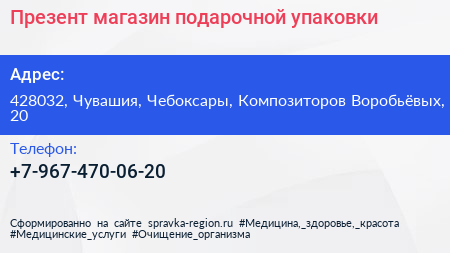 Презент, магазин подарочной упаковки по адресу 428032, Чувашия, Чебоксары, Композиторов Воробьёвых, 20 в дальнейшем Организация, размещена в следующих категориях: