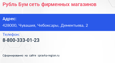 Рубль Бум, сеть фирменных магазинов по адресу 428000, Чувашия, Чебоксары, Дементьева, 2 в дальнейшем Организация, размещена в следующих категориях:
