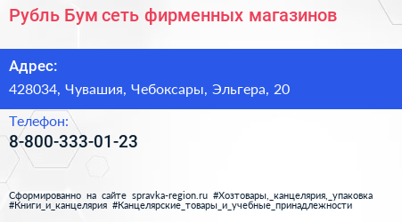 Рубль Бум, сеть фирменных магазинов по адресу 428034, Чувашия, Чебоксары, Эльгера, 20 в дальнейшем Организация, размещена в следующих категориях: